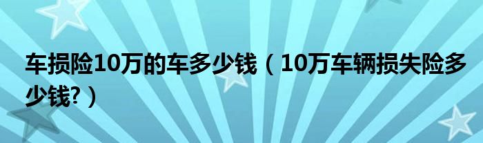大家好,小美来为大家解答以上问题。车损险10万的车多少钱,10万车辆损失险多少钱?很多人还不知道,现在让我们一起来看看吧!