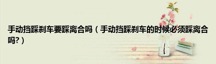 大家好,小美来为大家解答以上问题。手动挡踩刹车要踩离合吗,手动挡踩刹车的时候必须踩离合吗?很多人还不知道,现在让我们一起来看看吧!