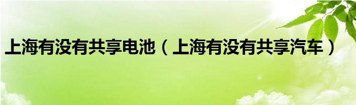 大家好,小美来为大家解答以上问题。上海有没有共享电池,上海有没有共享汽车很多人还不知道,现在让我们一起来看看吧!