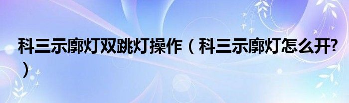 大家好,小美来为大家解答以上问题。科三示廓灯双跳灯操作,科三示廓灯怎么开?很多人还不知道,现在让我们一起来看看吧!