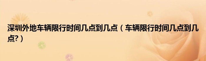 大家好,小美来为大家解答以上问题。深圳外地车辆限行时间几点到几点,车辆限行时间几点到几点?很多人还不知道,现在让我们一起来看看吧!