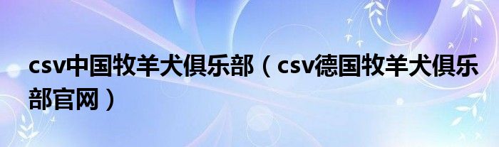 关于csv中国牧羊犬俱乐部,csv德国牧羊犬俱乐部官网这个很多人还不知道,今天菲菲来为大家解答以上的问题,现在让我们一起来看看吧!