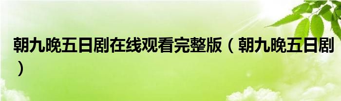 关于朝九晚五日剧在线观看完整版,朝九晚五日剧这个很多人还不知道,今天菲菲来为大家解答以上的问题,现在让我们一起来看看吧!