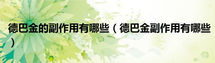 关于德巴金的副作用有哪些,德巴金副作用有哪些这个很多人还不知道,今天菲菲来为大家解答以上的问题,现在让我们一起来看看吧!