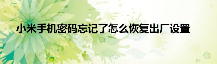 关于小米手机密码忘记了怎么恢复出厂设置这个很多人还不知道,今天菲菲来为大家解答以上的问题,现在让我们一起来看看吧!
