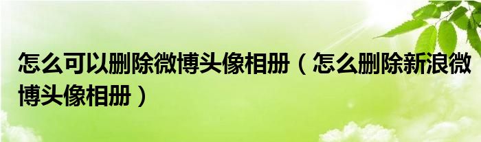 关于怎么可以删除微博头像相册,怎么删除新浪微博头像相册这个很多人还不知道,今天菲菲来为大家解答以上的问题,现在让我们一起来看看吧!