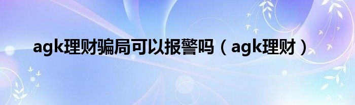 关于agk理财骗局可以报警吗,agk理财这个很多人还不知道,今天菲菲来为大家解答以上的问题,现在让我们一起来看看吧!