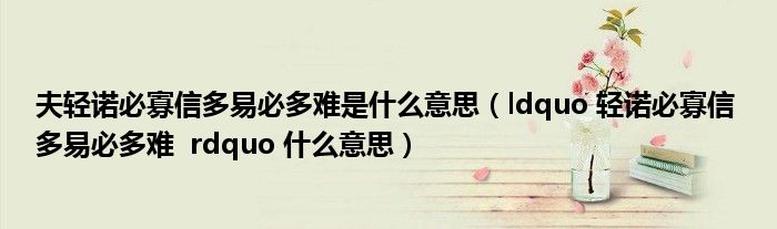 关于夫轻诺必寡信多易必多难是什么意思,ldquo 轻诺必寡信 多易必多难 rdquo 什么意思这个很多人还不知道,今天菲菲来为大家解答以上的问题,现在让我们一起来看看吧!