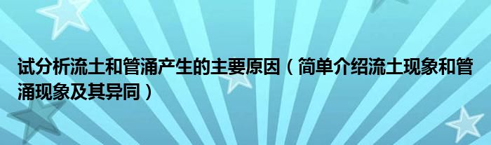 关于试分析流土和管涌产生的主要原因,简单介绍流土现象和管涌现象及其异同这个很多人还不知道,今天菲菲来为大家解答以上的问题,现在让我们一起来看看吧!