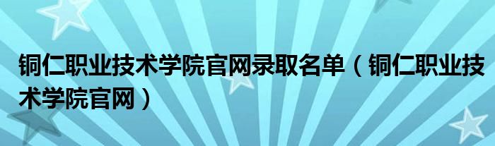 关于铜仁职业技术学院官网录取名单,铜仁职业技术学院官网这个很多人还不知道,今天菲菲来为大家解答以上的问题,现在让我们一起来看看吧!