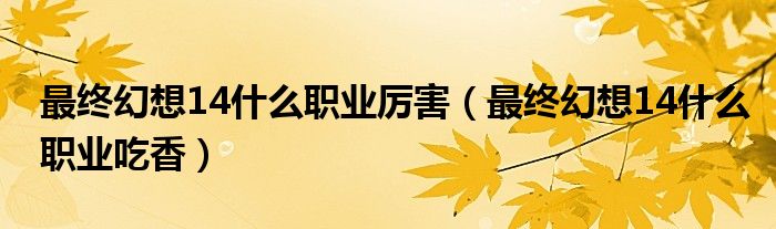 关于最终幻想14什么职业厉害,最终幻想14什么职业吃香这个很多人还不知道,今天菲菲来为大家解答以上的问题,现在让我们一起来看看吧!