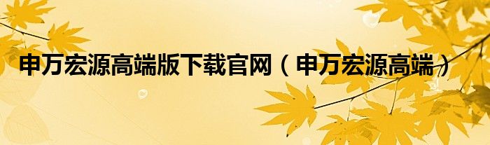 关于申万宏源高端版下载官网,申万宏源高端这个很多人还不知道,今天菲菲来为大家解答以上的问题,现在让我们一起来看看吧!