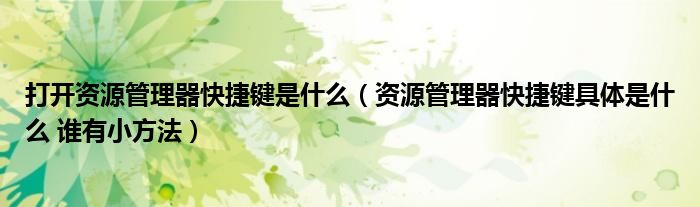 关于打开资源管理器快捷键是什么,资源管理器快捷键具体是什么 谁有小方法这个很多人还不知道,今天菲菲来为大家解答以上的问题,现在让我们一起来看看吧!