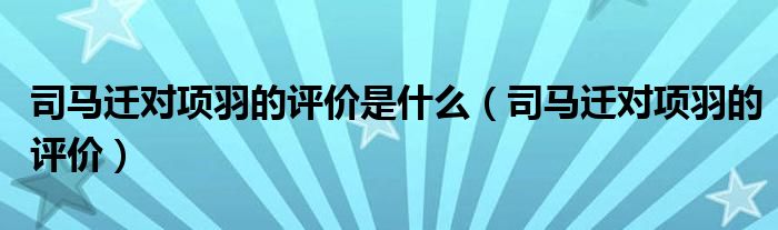 关于司马迁对项羽的评价是什么,司马迁对项羽的评价这个很多人还不知道,今天菲菲来为大家解答以上的问题,现在让我们一起来看看吧!