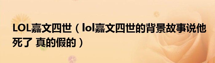 关于LOL嘉文四世,lol嘉文四世的背景故事说他死了 真的假的这个很多人还不知道,今天菲菲来为大家解答以上的问题,现在让我们一起来看看吧!