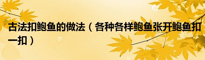 关于古法扣鲍鱼的做法,各种各样鲍鱼张开鲍鱼扣一扣这个很多人还不知道,今天菲菲来为大家解答以上的问题,现在让我们一起来看看吧!