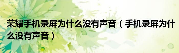 关于荣耀手机录屏为什么没有声音,手机录屏为什么没有声音这个很多人还不知道,今天菲菲来为大家解答以上的问题,现在让我们一起来看看吧!