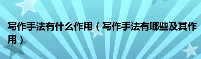 关于写作手法有什么作用,写作手法有哪些及其作用这个很多人还不知道,今天菲菲来为大家解答以上的问题,现在让我们一起来看看吧!