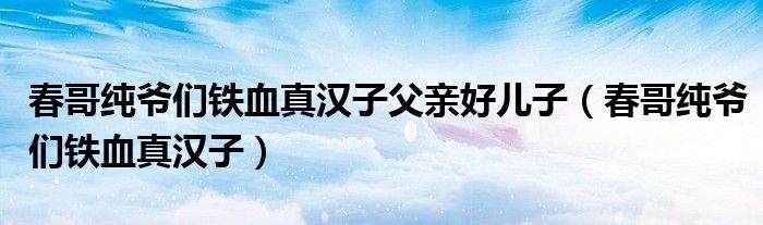 关于春哥纯爷们铁血真汉子父亲好儿子,春哥纯爷们铁血真汉子这个很多人还不知道,今天菲菲来为大家解答以上的问题,现在让我们一起来看看吧!