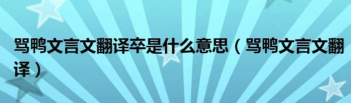 关于骂鸭文言文翻译卒是什么意思,骂鸭文言文翻译这个很多人还不知道,今天菲菲来为大家解答以上的问题,现在让我们一起来看看吧!