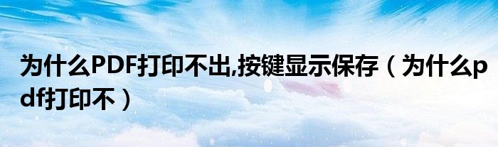 关于为什么PDF打印不出,按键显示保存,为什么pdf打印不这个很多人还不知道,今天菲菲来为大家解答以上的问题,现在让我们一起来看看吧!