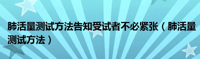 关于肺活量测试方法告知受试者不必紧张,肺活量测试方法这个很多人还不知道,今天菲菲来为大家解答以上的问题,现在让我们一起来看看吧!