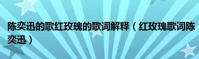 关于陈奕迅的歌红玫瑰的歌词解释,红玫瑰歌词陈奕迅这个很多人还不知道,今天菲菲来为大家解答以上的问题,现在让我们一起来看看吧!