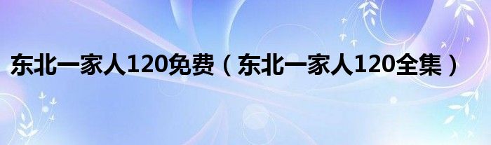 关于东北一家人120免费,东北一家人120全集这个很多人还不知道,今天菲菲来为大家解答以上的问题,现在让我们一起来看看吧!