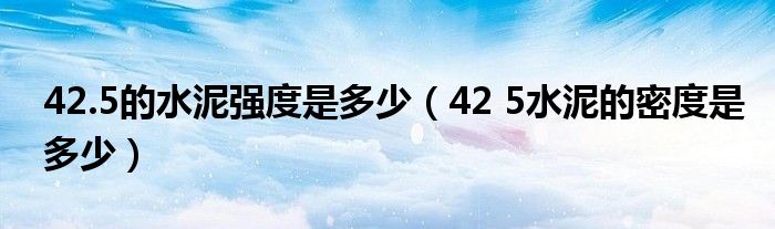关于42.5的水泥强度是多少,42 5水泥的密度是多少这个很多人还不知道,今天菲菲来为大家解答以上的问题,现在让我们一起来看看吧!