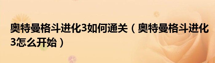 关于奥特曼格斗进化3如何通关,奥特曼格斗进化3怎么开始这个很多人还不知道,今天菲菲来为大家解答以上的问题,现在让我们一起来看看吧!
