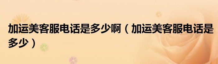 关于加运美客服电话是多少啊,加运美客服电话是多少这个很多人还不知道,今天菲菲来为大家解答以上的问题,现在让我们一起来看看吧!