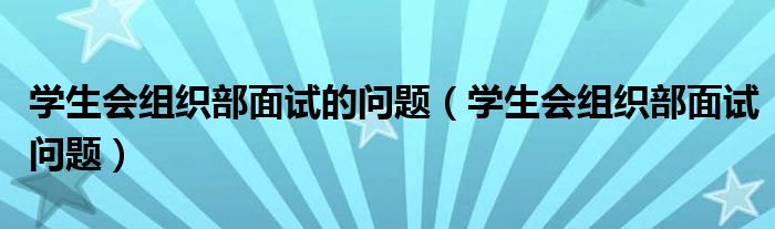关于学生会组织部面试的问题,学生会组织部面试问题这个很多人还不知道,今天菲菲来为大家解答以上的问题,现在让我们一起来看看吧!