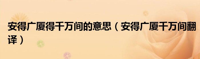 关于安得广厦得千万间的意思,安得广厦千万间翻译这个很多人还不知道,今天菲菲来为大家解答以上的问题,现在让我们一起来看看吧!