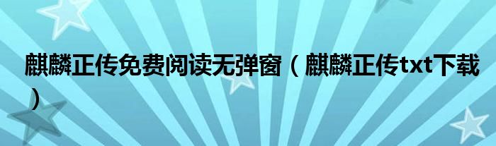 麒麟正传免费阅读无弹窗(麒麟正传txt下载)