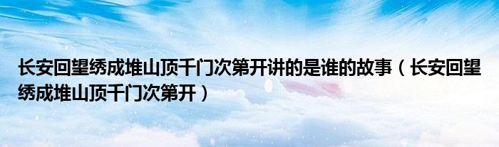 关于长安回望绣成堆山顶千门次第开讲的是谁的故事,长安回望绣成堆山顶千门次第开这个很多人还不知道,今天菲菲来为大家解答以上的问题,现在让我们一起来看看吧!