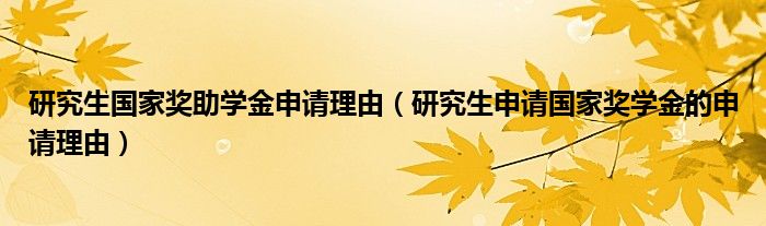关于研究生国家奖助学金申请理由,研究生申请国家奖学金的申请理由这个很多人还不知道,今天菲菲来为大家解答以上的问题,现在让我们一起来看看吧!