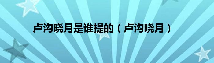 关于卢沟晓月是谁提的,卢沟晓月这个很多人还不知道,今天菲菲来为大家解答以上的问题,现在让我们一起来看看吧!