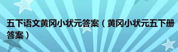 关于五下语文黄冈小状元答案,黄冈小状元五下册答案这个很多人还不知道,今天菲菲来为大家解答以上的问题,现在让我们一起来看看吧!