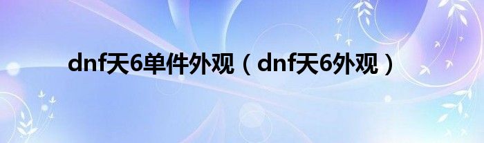 关于dnf天6单件外观,dnf天6外观这个很多人还不知道,今天菲菲来为大家解答以上的问题,现在让我们一起来看看吧!