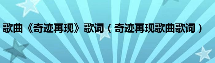 关于歌曲《奇迹再现》歌词,奇迹再现歌曲歌词这个很多人还不知道,今天菲菲来为大家解答以上的问题,现在让我们一起来看看吧!