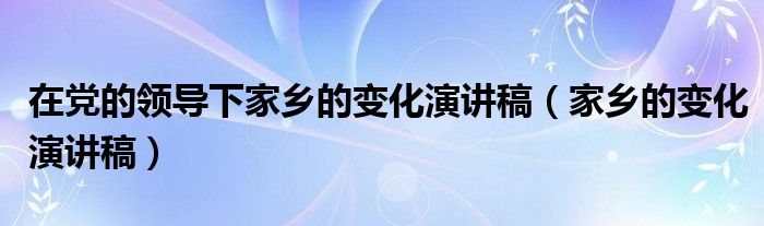 关于在党的领导下家乡的变化演讲稿,家乡的变化演讲稿这个很多人还不知道,今天菲菲来为大家解答以上的问题,现在让我们一起来看看吧!