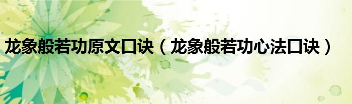 关于龙象般若功原文口诀,龙象般若功心法口诀这个很多人还不知道,今天菲菲来为大家解答以上的问题,现在让我们一起来看看吧!