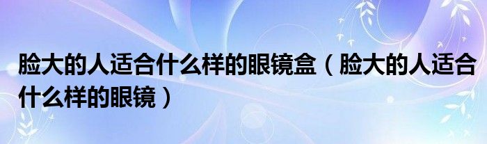 关于脸大的人适合什么样的眼镜盒,脸大的人适合什么样的眼镜这个很多人还不知道,今天菲菲来为大家解答以上的问题,现在让我们一起来看看吧!