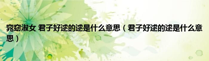 关于窕窈淑女 君子好逑的逑是什么意思,君子好逑的逑是什么意思这个很多人还不知道,今天菲菲来为大家解答以上的问题,现在让我们一起来看看吧!