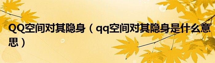 大家好,小晋来为大家解答以下问题,关于QQ空间对其隐身,qq空间对其隐身是什么意思很多人还不知道,今天让我们一起来看看吧!