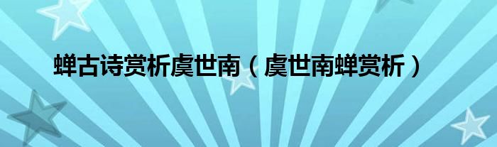 蝉古诗赏析虞世南(虞世南蝉赏析)