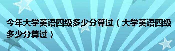 大家好,小晋来为大家解答以下问题,关于今年大学英语四级多少分算过,大学英语四级多少分算过很多人还不知道,今天让我们一起来看看吧!