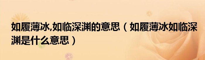 关于如履薄冰,如临深渊的意思,如履薄冰如临深渊是什么意思这个很多人还不知道,今天菲菲来为大家解答以上的问题,现在让我们一起来看看吧!