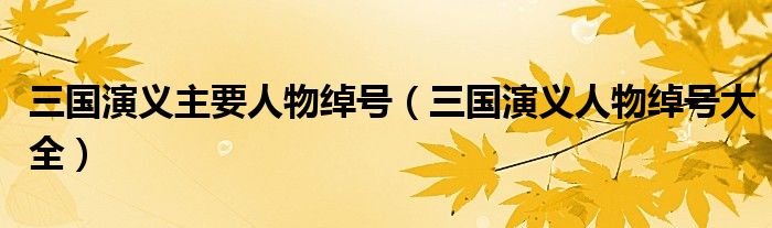 关于三国演义主要人物绰号,三国演义人物绰号大全这个很多人还不知道,今天菲菲来为大家解答以上的问题,现在让我们一起来看看吧!