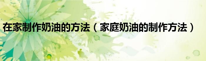关于在家制作奶油的方法,家庭奶油的制作方法这个很多人还不知道,今天菲菲来为大家解答以上的问题,现在让我们一起来看看吧!